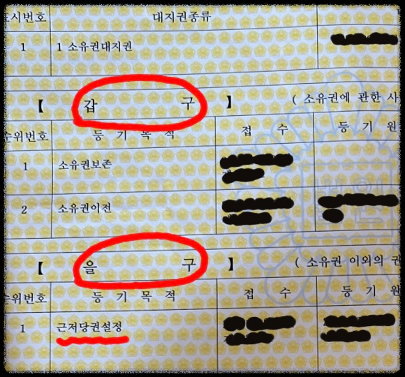 을구에서 담보 즉 근저당 설정을 확인합니다.